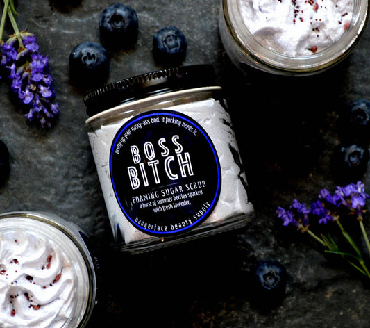 Blackberry Lavender Foaming Sugar Scrub. Natural Body Scrub.