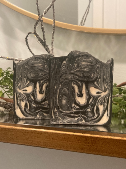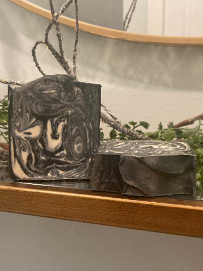 207 Vintage Men' s Exfoliating Soap Bar | All-Natural | Vegan Friendly Made with pure, unrefined Shea Butter from Ghana. This handmade, natural soap is not only an excellent source of needed moisture for your skin, but it also leaves your skin feeling wonderfully smooth. Each bar is stamped with a mustache. 207 Vintage | Clean, citrusy, fruity, earthy | Yuzu, bergamot and lemon on a woodsy base, intertwined with jasmine, ginger and black peppercorns. 5.5+oz each bar.